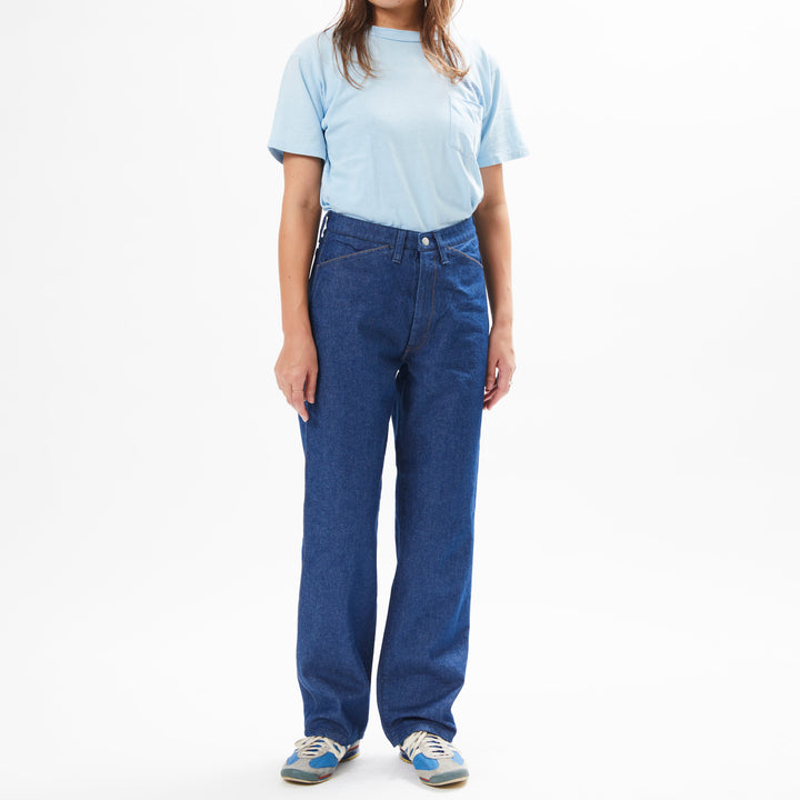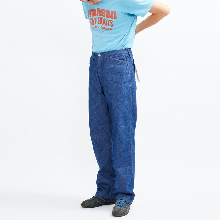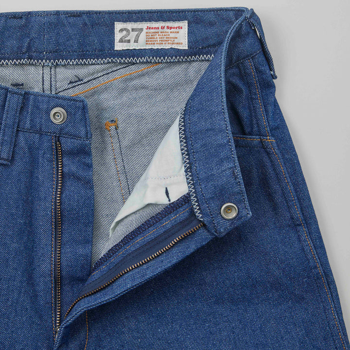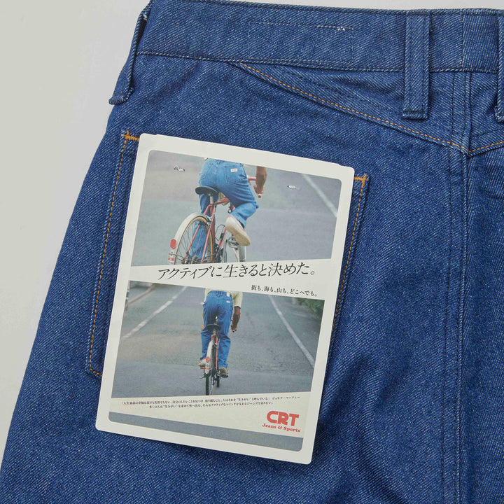 The fabric is 12.5oz. Special dyeing and spinning are applied to enable twin washing. Color fading from aging reproduces the atmosphere of the old time.