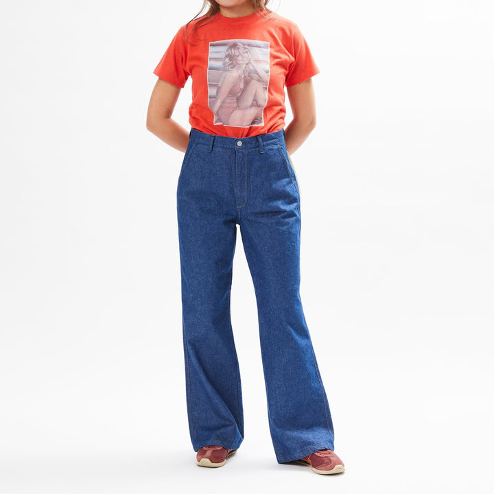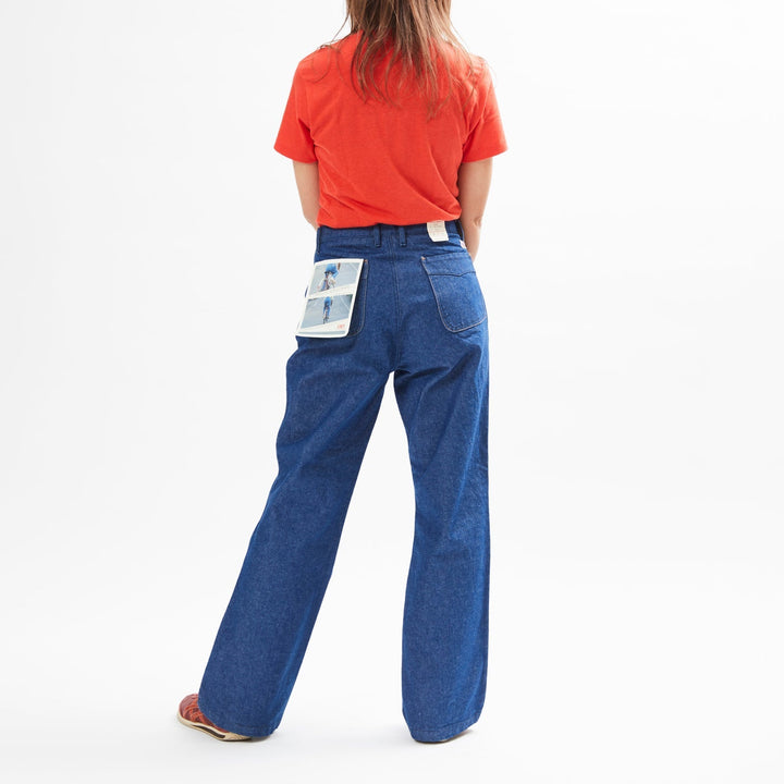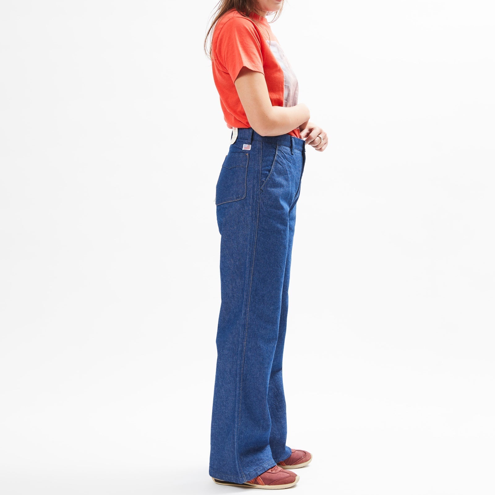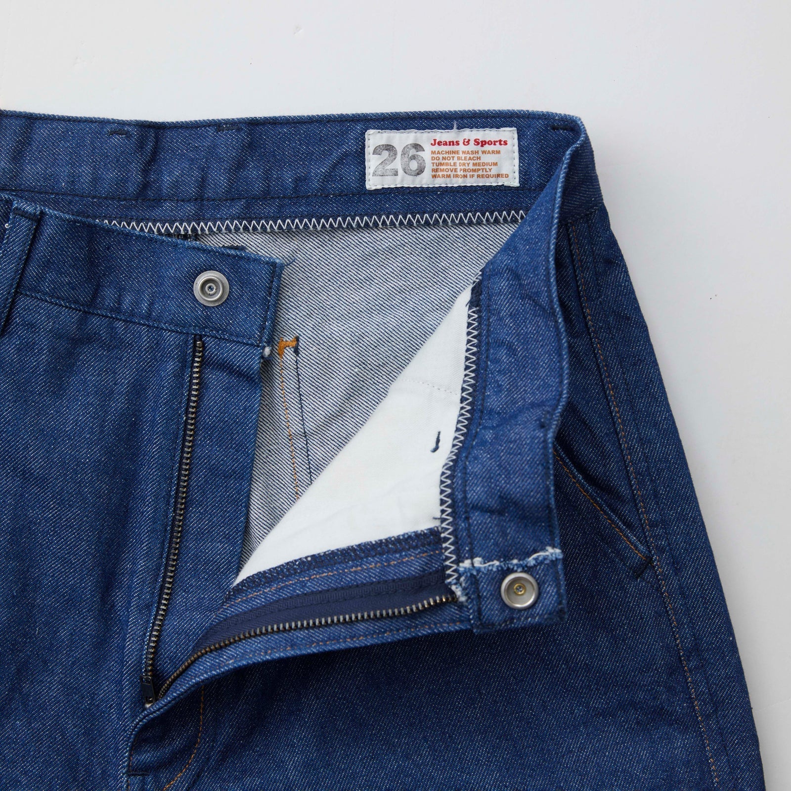 ・Baggy silhouette ・Produced in Kojima, Kurashiki City, Okayama Prefecture ・Sophisticated high waist ・Hip pockets designed with a unique angle ・Longer vertical slash pockets for easier access ・American-style original name tag ・High hip line using a classic pattern ・70s-style Talon zipper ・Suitable for all seasons ・Easy to put on and take off with front dot buttons ・Nostalgic French jeans essence ・Fabric that offers simple aging like jeans from the Showa era Model height: 163 cm, wearing size W27.