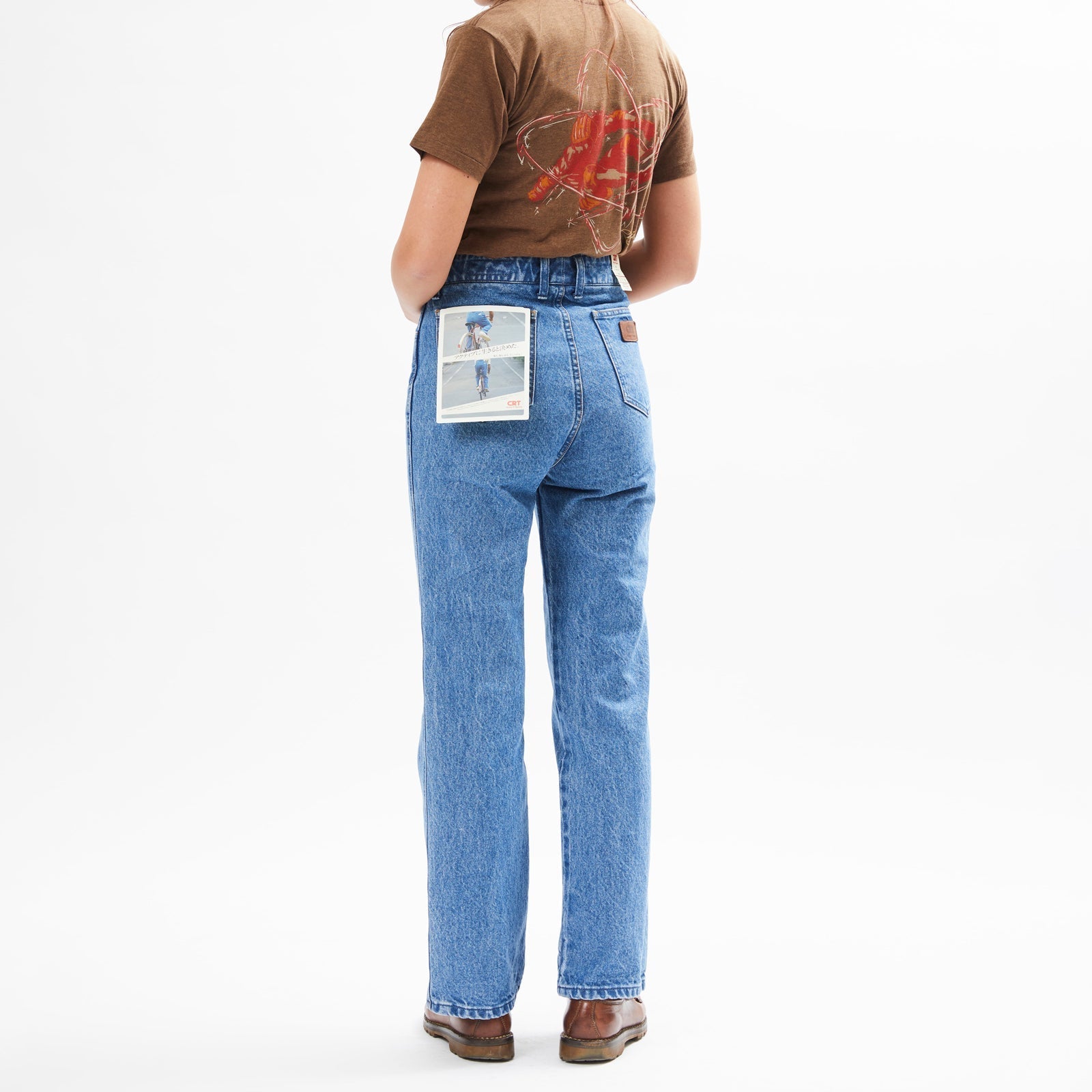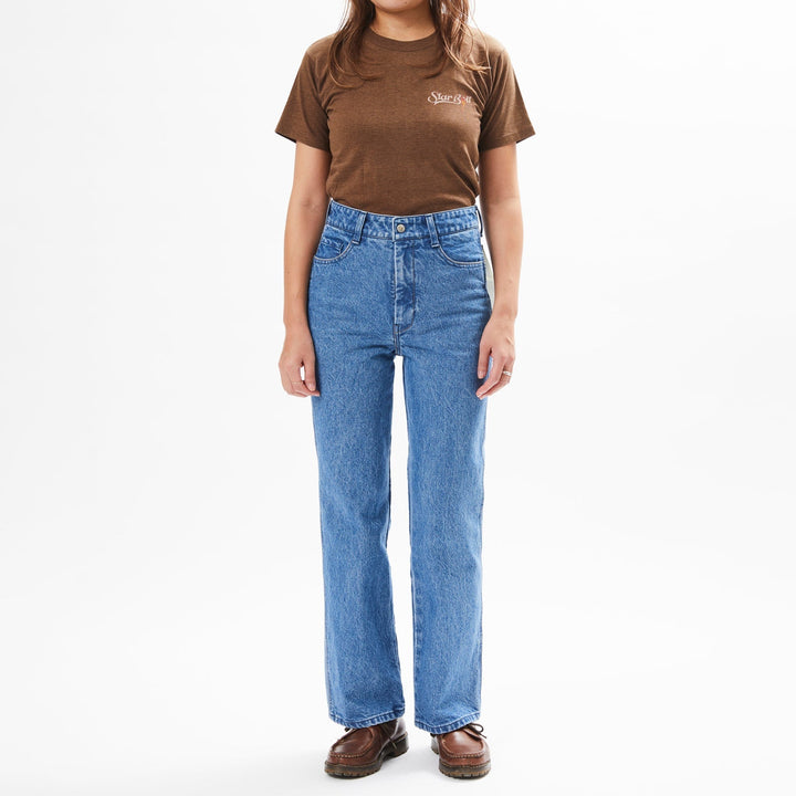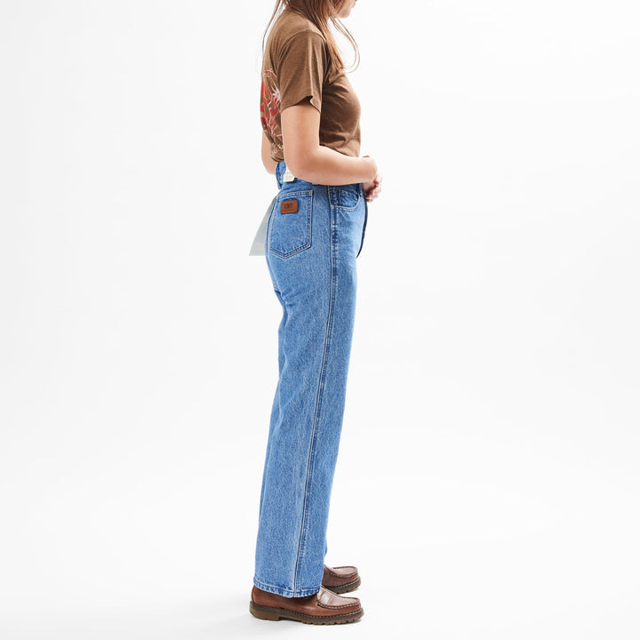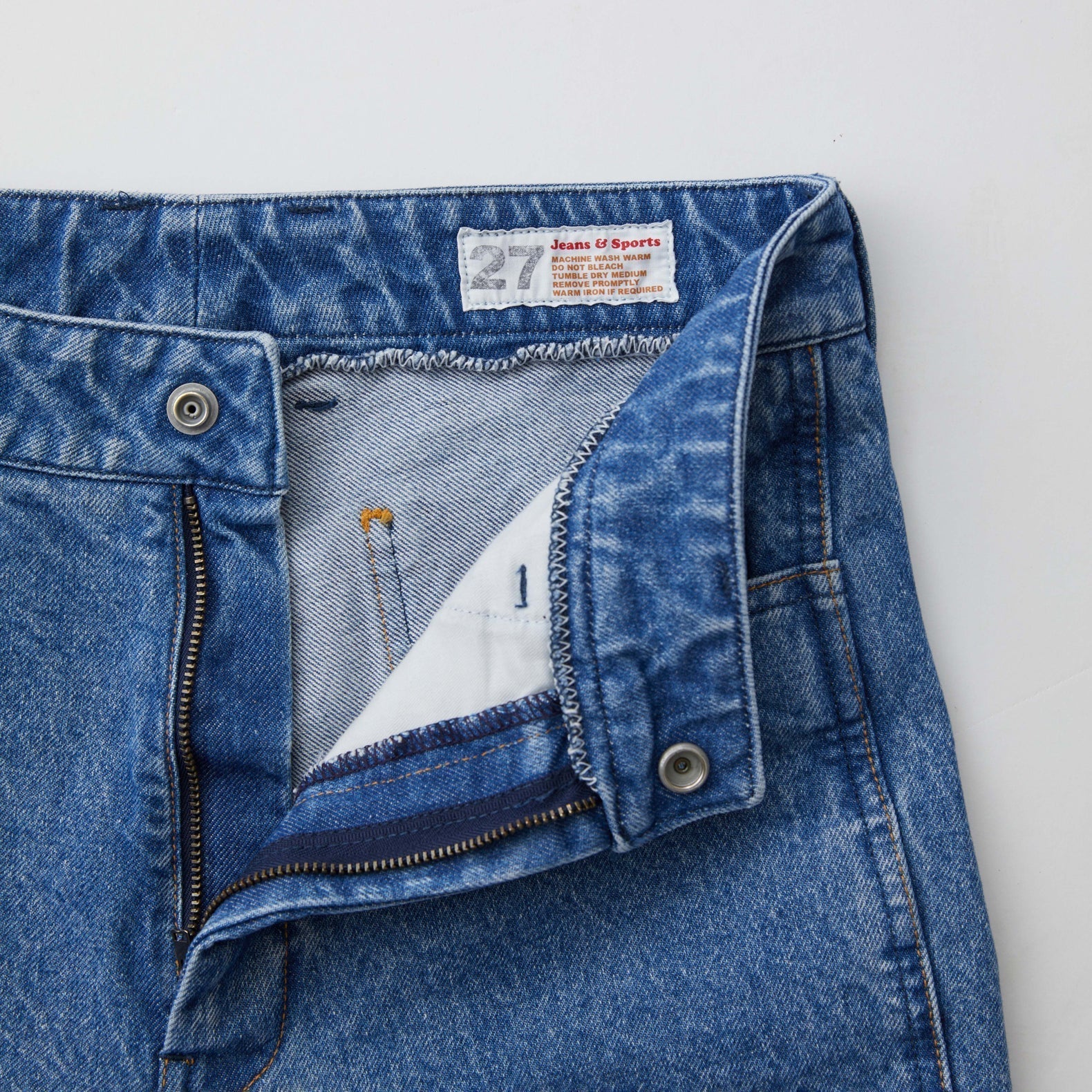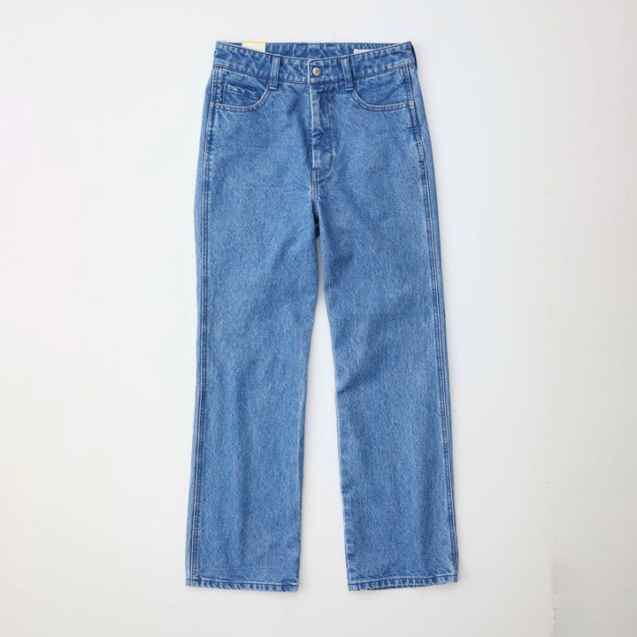 ・Exclusive to Blue Store & Official Web Shop ・Boot and shoe cut ・Produced in Kojima, Kurashiki City, Okayama Prefecture ・Sophisticated high waist ・Clean design without a back yoke for a sleek look ・High hip line ・Classic curved pockets and coin pocket ・70s West Coast-inspired leather name patch ・70s-style Talon zipper ・Suitable for all seasons ・Easy to put on and take off with front dot buttons ・Nostalgic LA designer jeans essence ・Unique washing process reminiscent of vintage Japanese jeans Model height: 163 cm, wearing size W27.