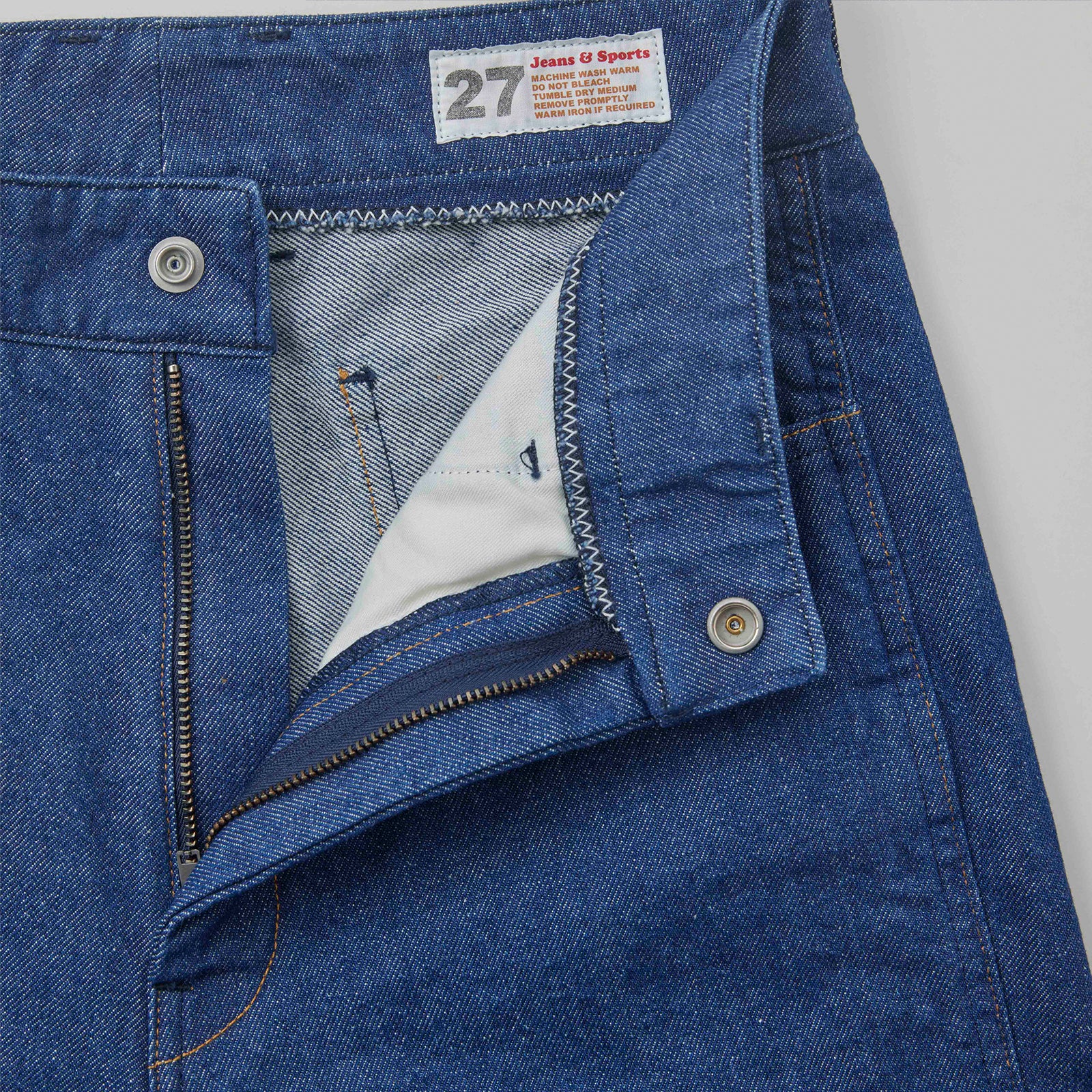 ・Boot and shoe cut ・Produced in Kojima, Kurashiki City, Okayama Prefecture ・Sophisticated high waist ・Clean design without a back yoke for a sleek look ・High hip line ・Classic curved pockets and coin pocket ・Original brand logo name tag ・70s-style Talon zipper ・Suitable for all seasons ・Easy to put on and take off with front dot buttons ・Nostalgic LA designer jeans essence ・Non-wash fabric for custom aging patterns Female model: Height 163 cm, wearing size W27. Male model: Height 177 cm, wearing size W30.